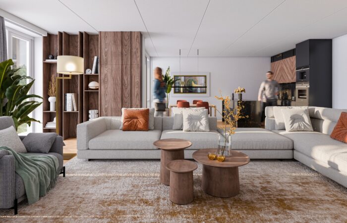 De appartementen zijn ontworpen met oog voor comfort, ruimte en gebruiksgemak. Denk aan royale woonkamers met veel daglicht, een open keuken, één of twee slaapkamers, moderne badkamers en een inpandige berging. Sommige woningen beschikken bovendien over een beschut terras of loggia. Natuurlijk is het gebouw voorzien van een lift en een semi-overdekte parkeerkelder – ideaal voor wie gelijkvloers wil wonen zonder zorgen.