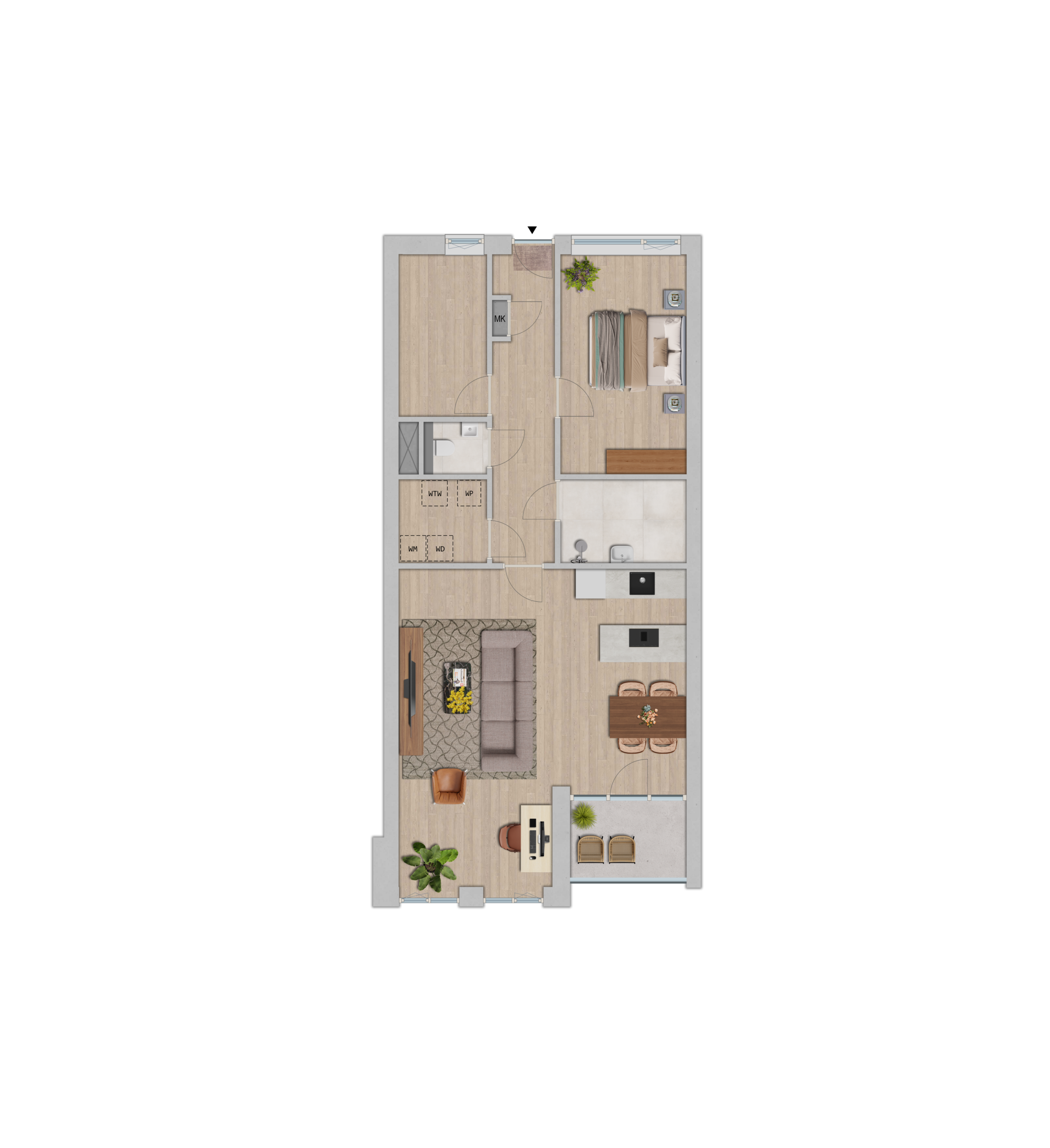De appartementen zijn ontworpen met oog voor comfort, ruimte en gebruiksgemak. Denk aan royale woonkamers met veel daglicht, een open keuken, één of twee slaapkamers, moderne badkamers en een inpandige berging. Sommige woningen beschikken bovendien over een beschut terras of loggia. Natuurlijk is het gebouw voorzien van een lift en een semi-overdekte parkeerkelder – ideaal voor wie gelijkvloers wil wonen zonder zorgen.