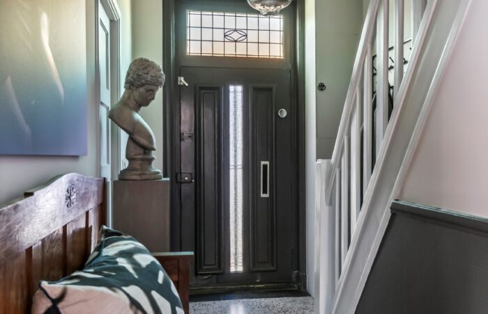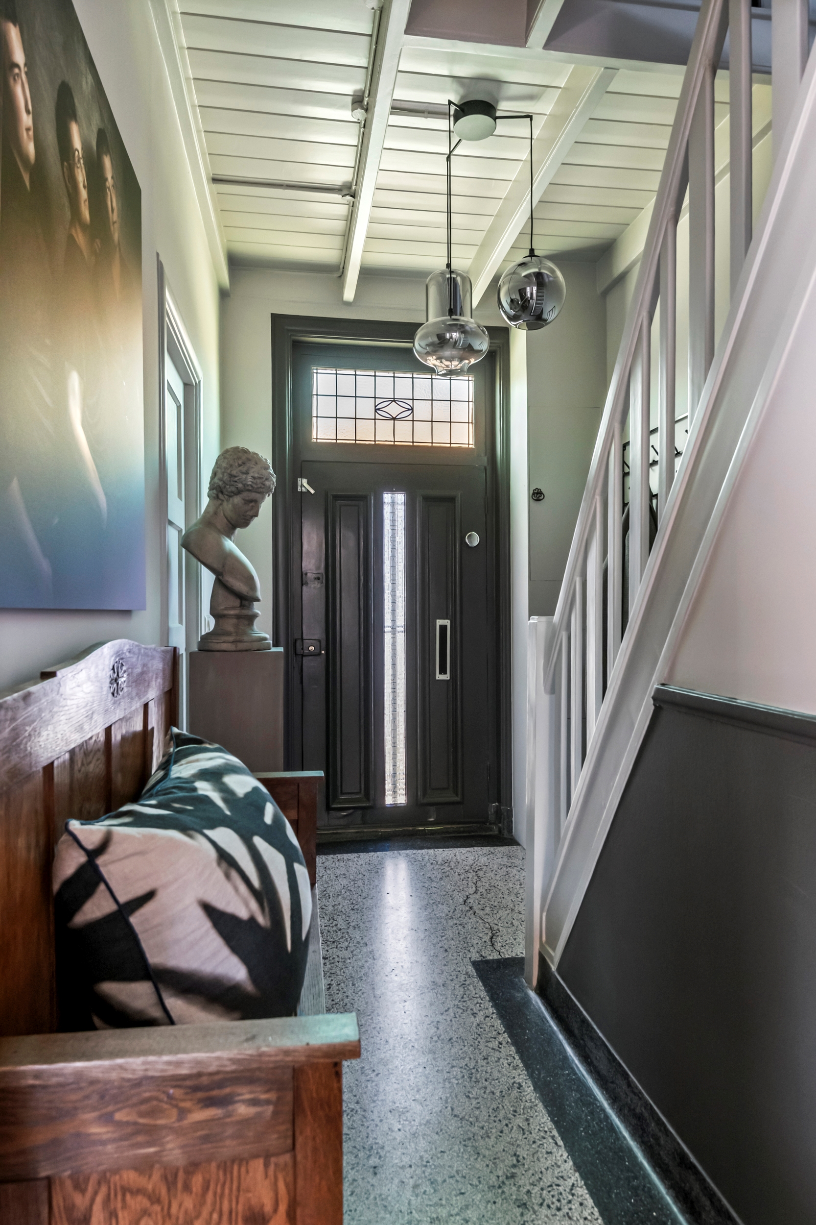 Via de verzorgde voortuin bereik je de entree van de woning. In de hal vallen direct de karakteristieke elementen op, waaronder de prachtige granito vloer, die meteen de sfeer en het authentieke karakter van deze jaren ’30-woning benadrukt. Vanuit de hal zijn zowel de woonkamer als de keuken bereikbaar.