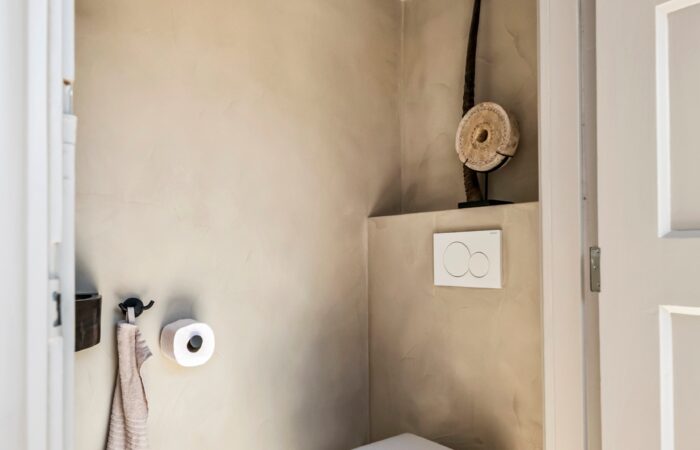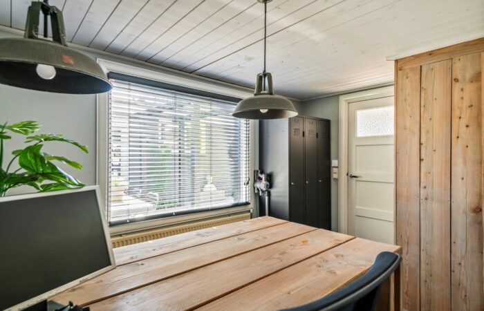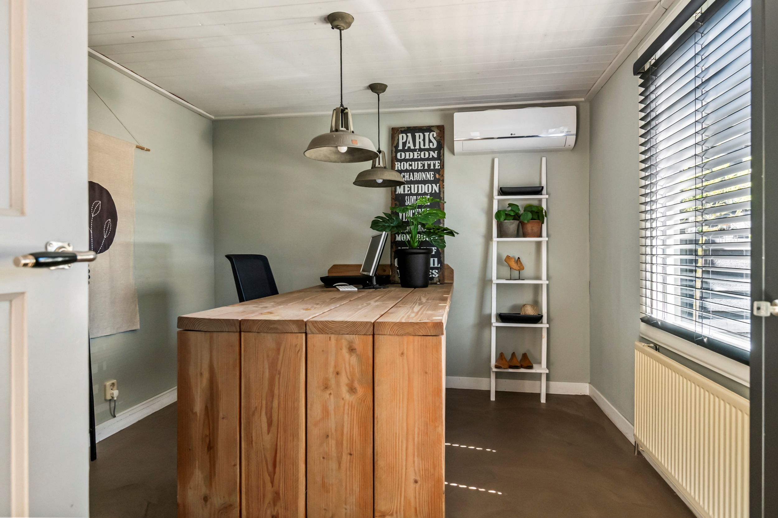 In het achterste gedeelte van de woning zijn het toilet en de extra werkruimte bereikbaar. Het toilet is uitgevoerd met een zwevend toilet en fonteintje. De aangrenzende werkruimte is ideaal voor thuiswerkers, maar biedt ook mogelijkheden als slaapkamer op de begane grond, waardoor gelijkvloers wonen tot de opties behoort.
