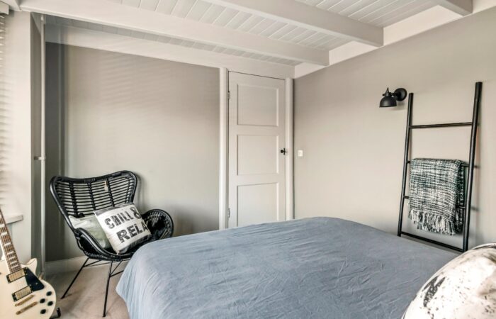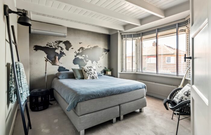 De slaapkamer aan de voorzijde is een echte eyecatcher dankzij de fraaie doorlopende erker, die deze ruimte extra karakter en charme geeft.