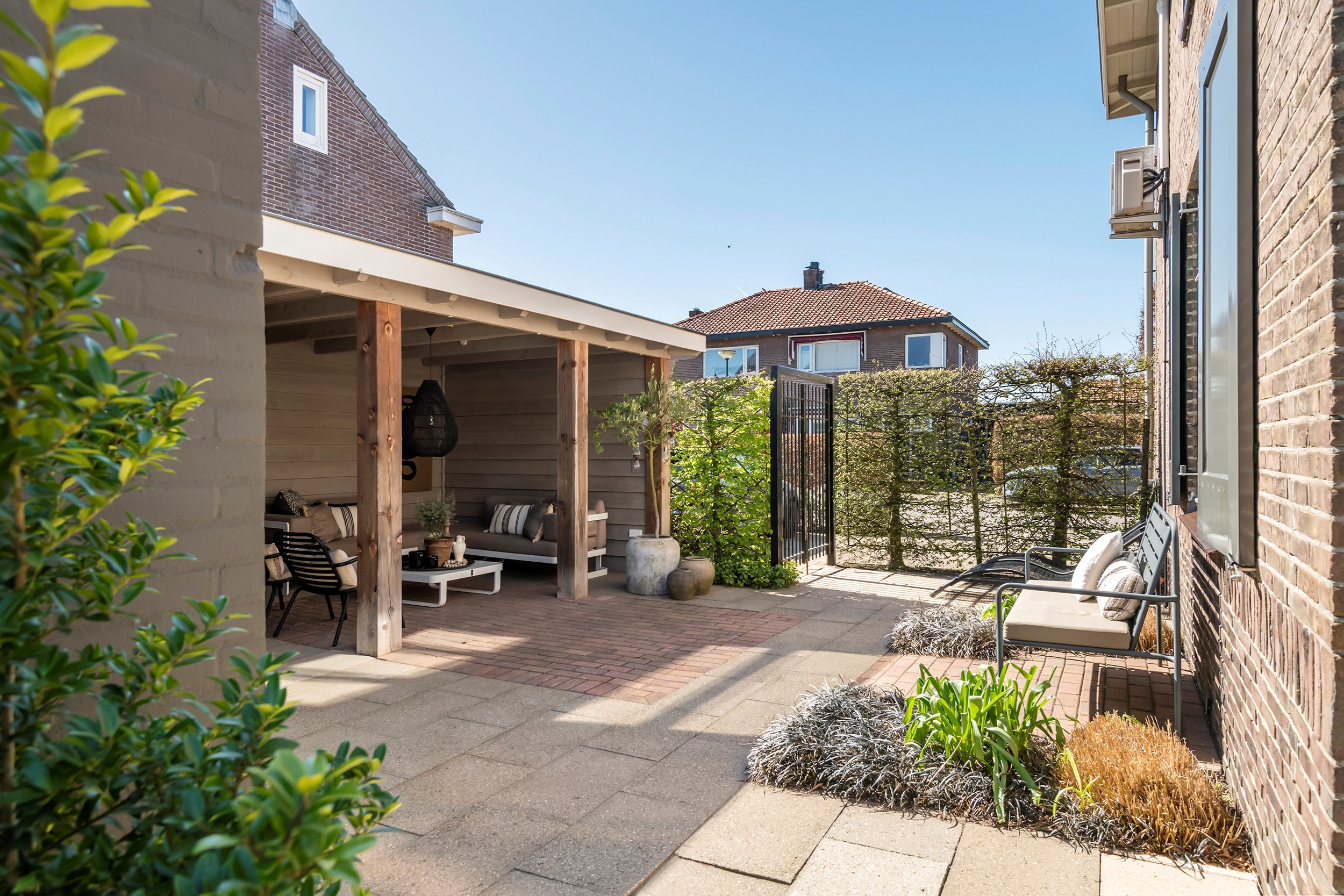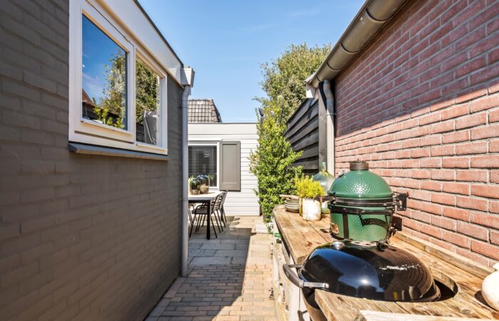 Ook buiten is het plaatje compleet. De woning beschikt over een oprit met ruimte voor meerdere auto’s. Hier is ook een laadpaal aanwezig, met een laadkabel van 7,5 meter lang. De zonnige tuin is fraai aangelegd en biedt met verschillende zitplekjes altijd een fijne plek om te ontspannen, in de zon te zitten of juist de schaduw op te zoeken. Of je nu rustig van een kop koffie wilt genieten, uitgebreid buiten wilt tafelen of gezellig met vrienden en familie wilt samenkomen: hier kan het allemaal.