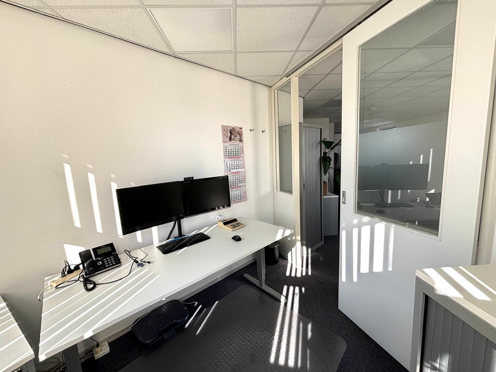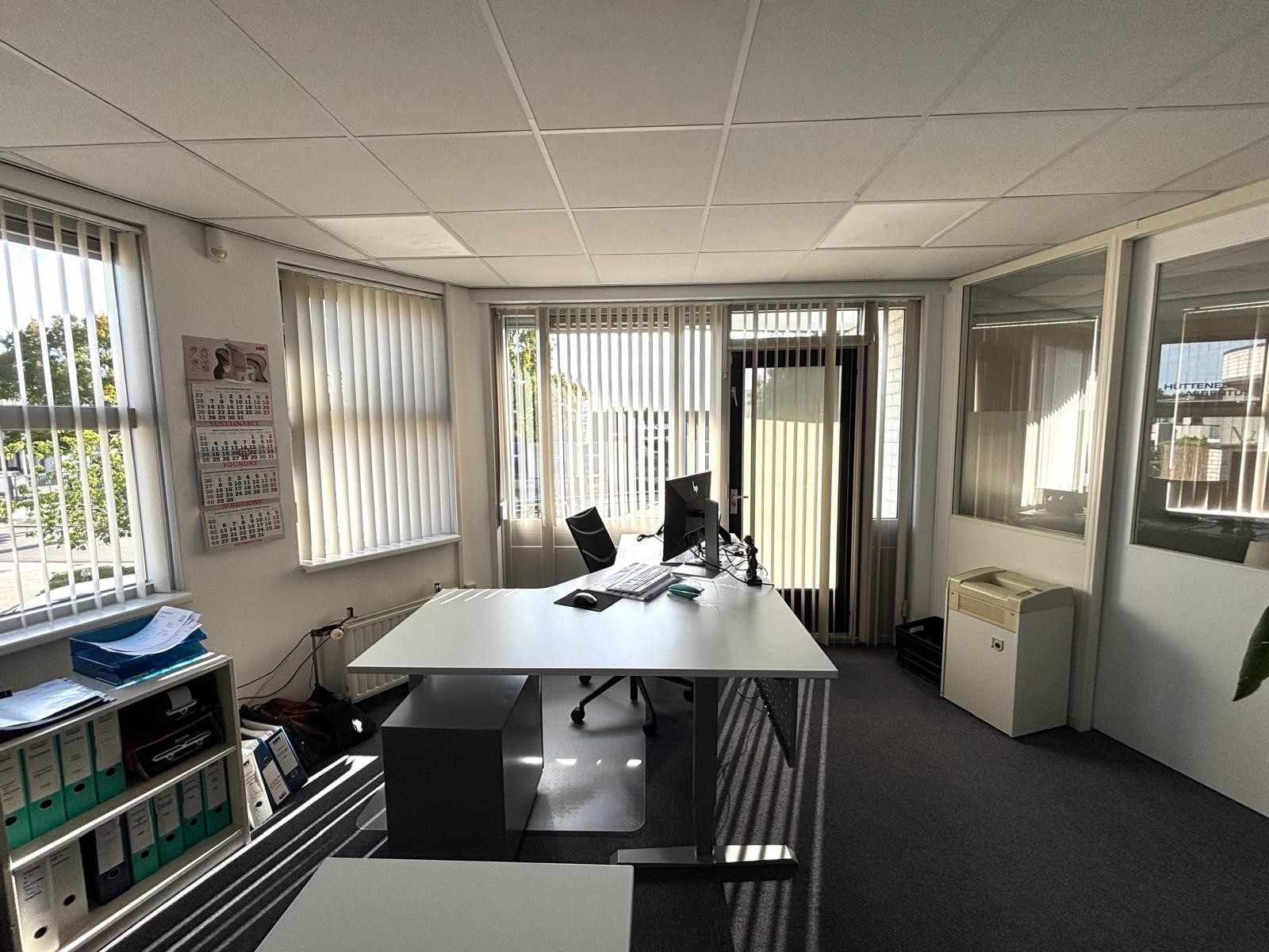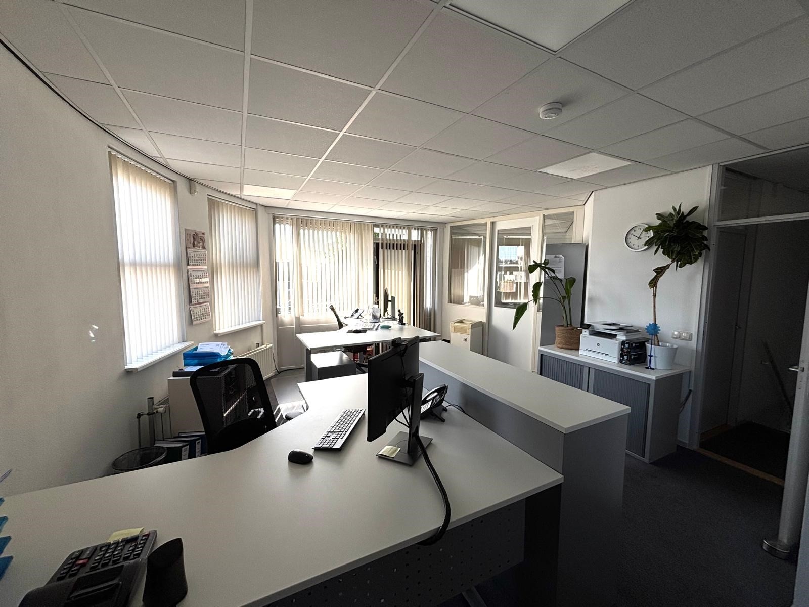 De kantoorruimte bevindt zich op de eerste verdieping en heeft een oppervlakte van circa 80 m². De ruimte is al voorzien van een functionele indeling, een airco unit en een pantry, waardoor een comfortabele en complete werkomgeving wordt geboden. Dankzij de grote raampartijen valt er veel daglicht binnen en is het kantoor zowel praktisch als prettig in gebruik. Bovendien is het pand uitgerust met zonnepanelen, wat voordelig is voor de stroomkosten en de maandlasten verlaagt.