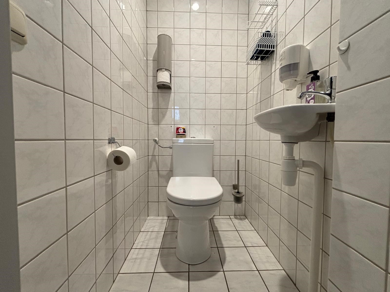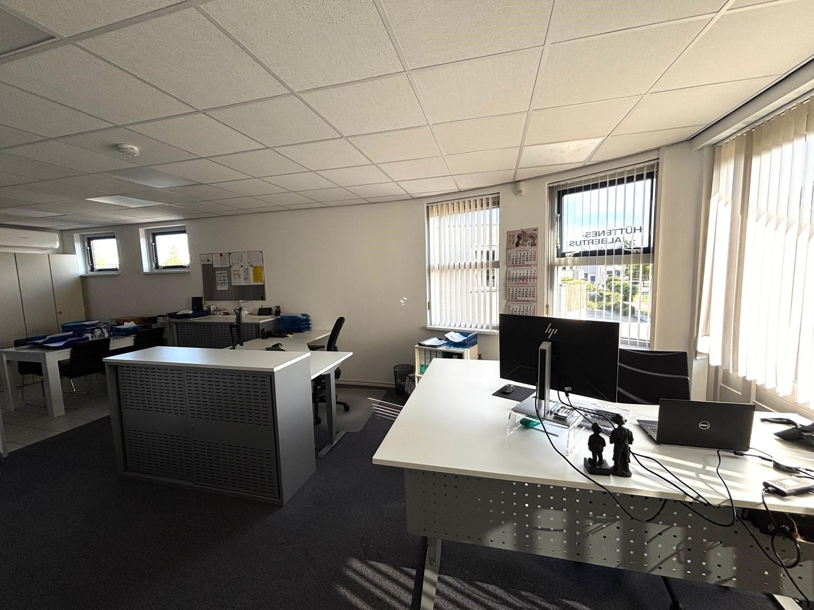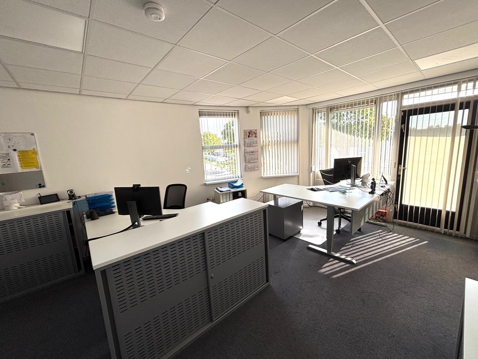 De kantoorruimte bevindt zich op de eerste verdieping en heeft een oppervlakte van circa 80 m². De ruimte is al voorzien van een functionele indeling, een airco unit en een pantry, waardoor een comfortabele en complete werkomgeving wordt geboden. Dankzij de grote raampartijen valt er veel daglicht binnen en is het kantoor zowel praktisch als prettig in gebruik. Bovendien is het pand uitgerust met zonnepanelen, wat voordelig is voor de stroomkosten en de maandlasten verlaagt.