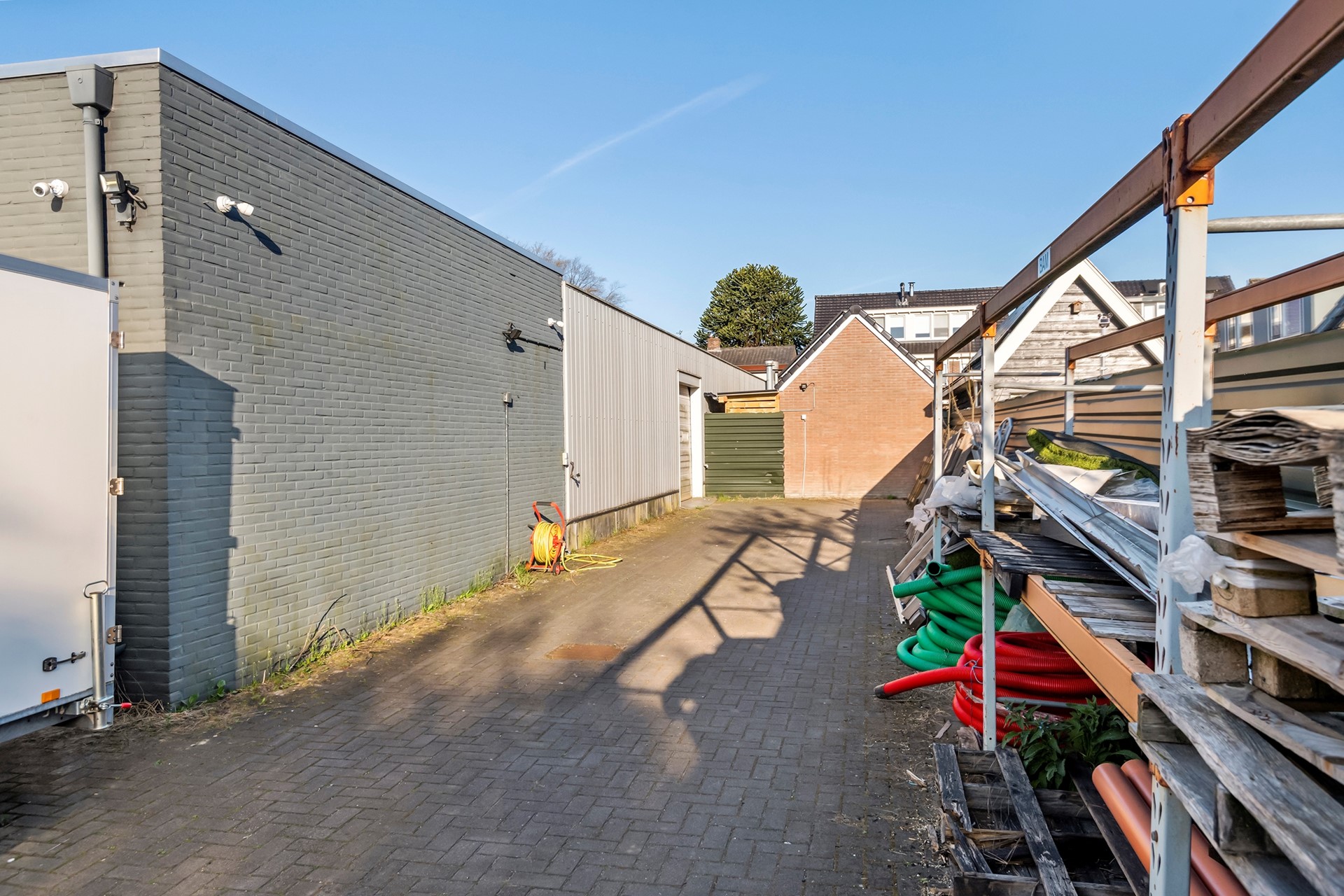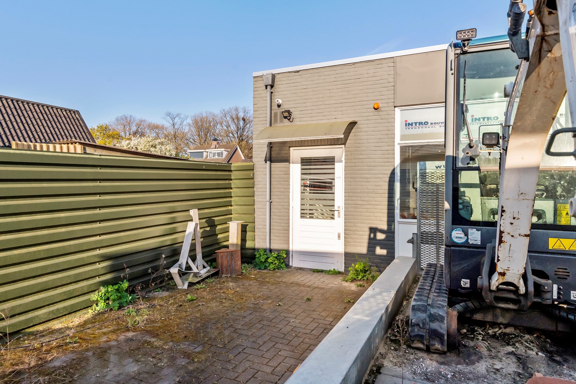Een gedeelte van de bedrijfshal is verkocht aan een aangrenzend perceel, waardoor de bedrijfshal niet meer rechthoekig is aan de achterzijde.