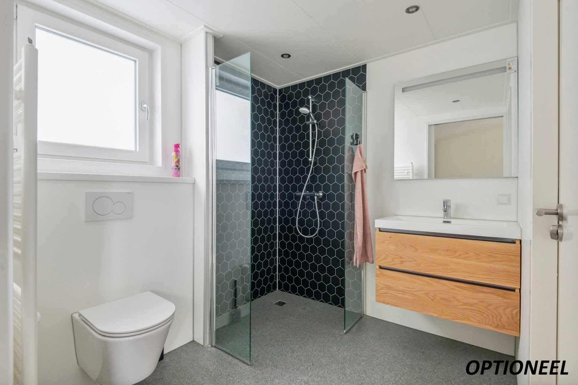 Op het perceel bevindt zich tevens een moderne mantelzorgwoning met een woonoppervlakte van ca. 55 m². Deze woning is ter overname en is volledig gelijkvloers ingericht. De mantelzorgwoning beschikt over een lichte woonkamer, een complete keuken, een ruime slaapkamer met vaste kast en een nette badkamer met douche, wastafelmeubel en toilet. Dankzij de eigen entree en privacy is dit een ideale ruimte voor mantelzorg, logies of een zelfstandig inwonend familielid. Zoals reeds aangegeven is deze unit in basis niet inbegrepen bij de koop, maar optioneel wel bij te kopen tegen meerprijs.