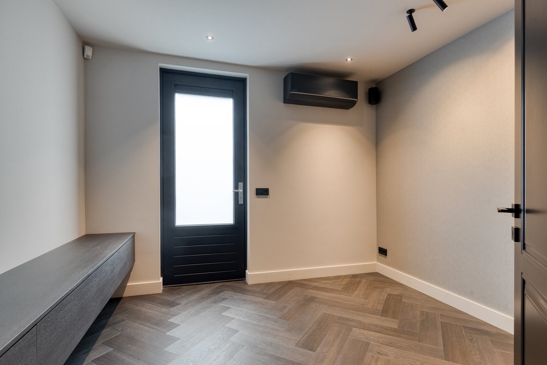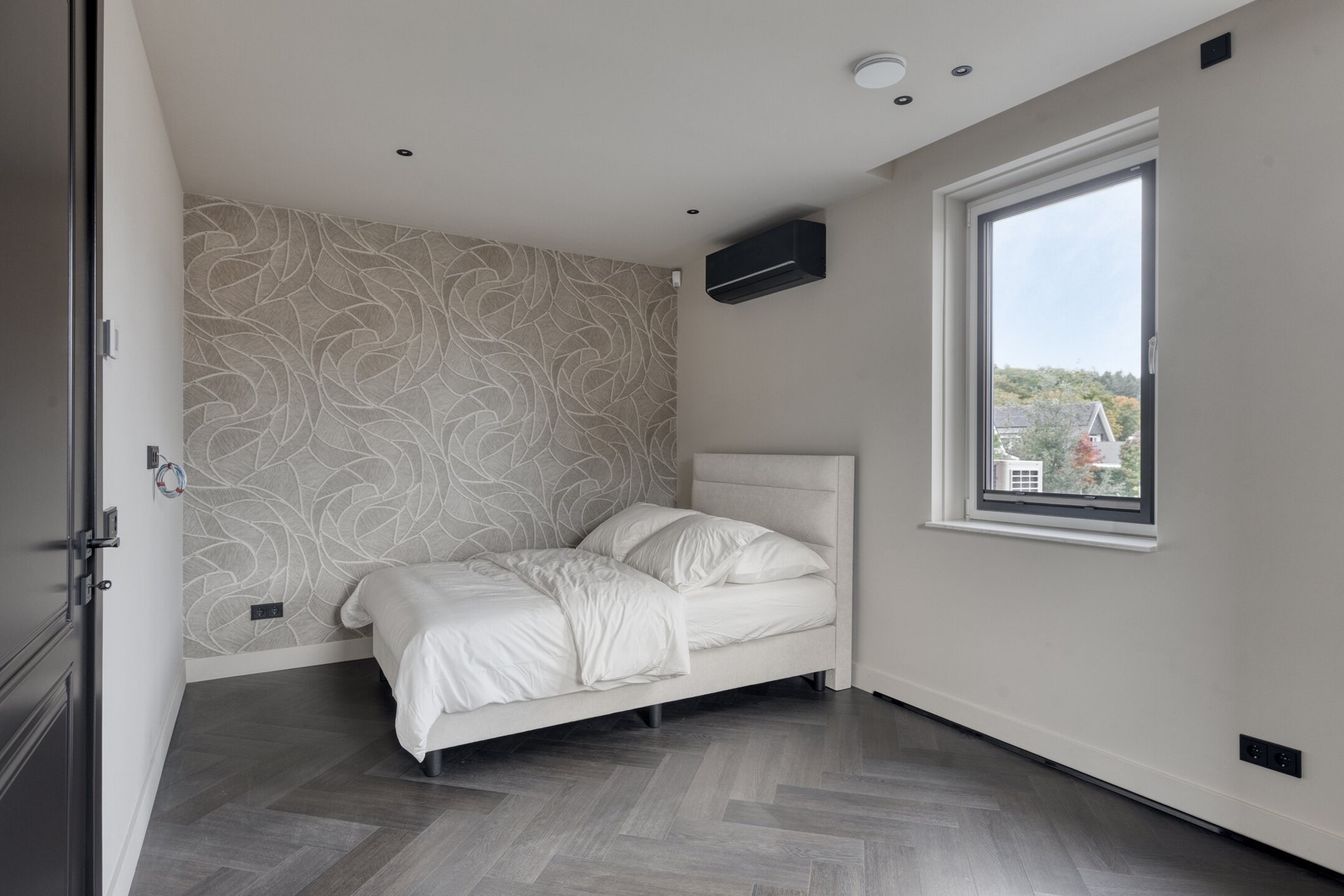 Op de overloop is een maatwerk kastenwand met verlichting ingebouwd en in de separate technische ruimte bevinden zich de Atlantic warmtepomp, het WTW-systeem en extra bergruimte. Een verdieping die aanvoelt als een privé suite; comfortabel, stijlvol en volledig gericht op ontspanning.