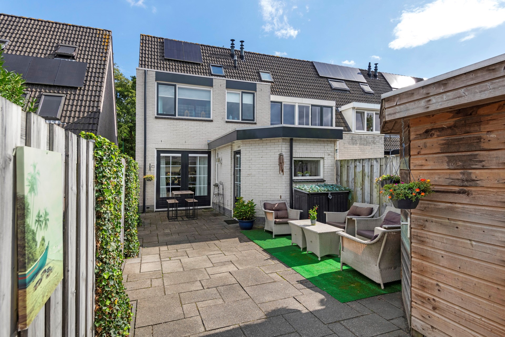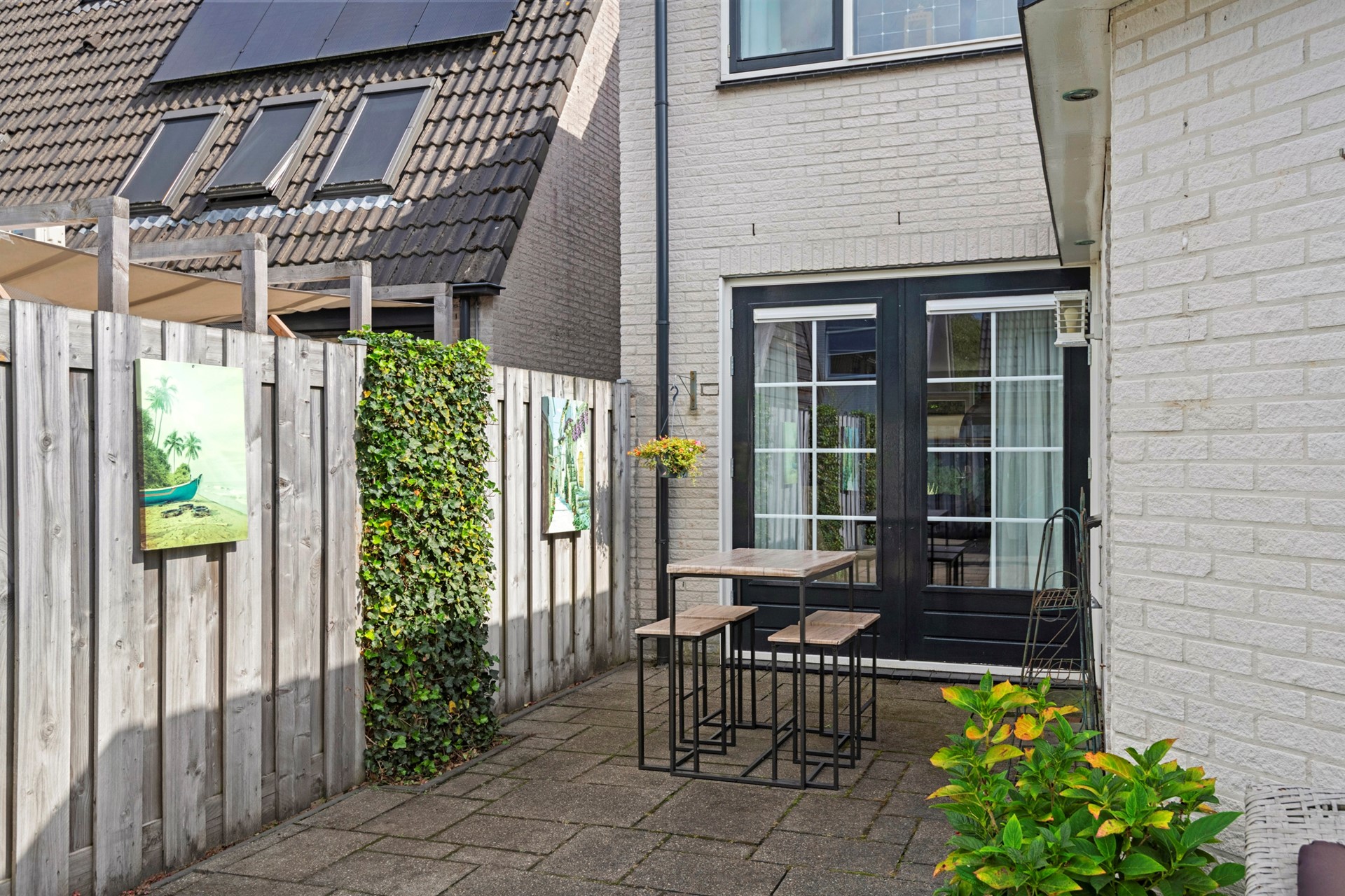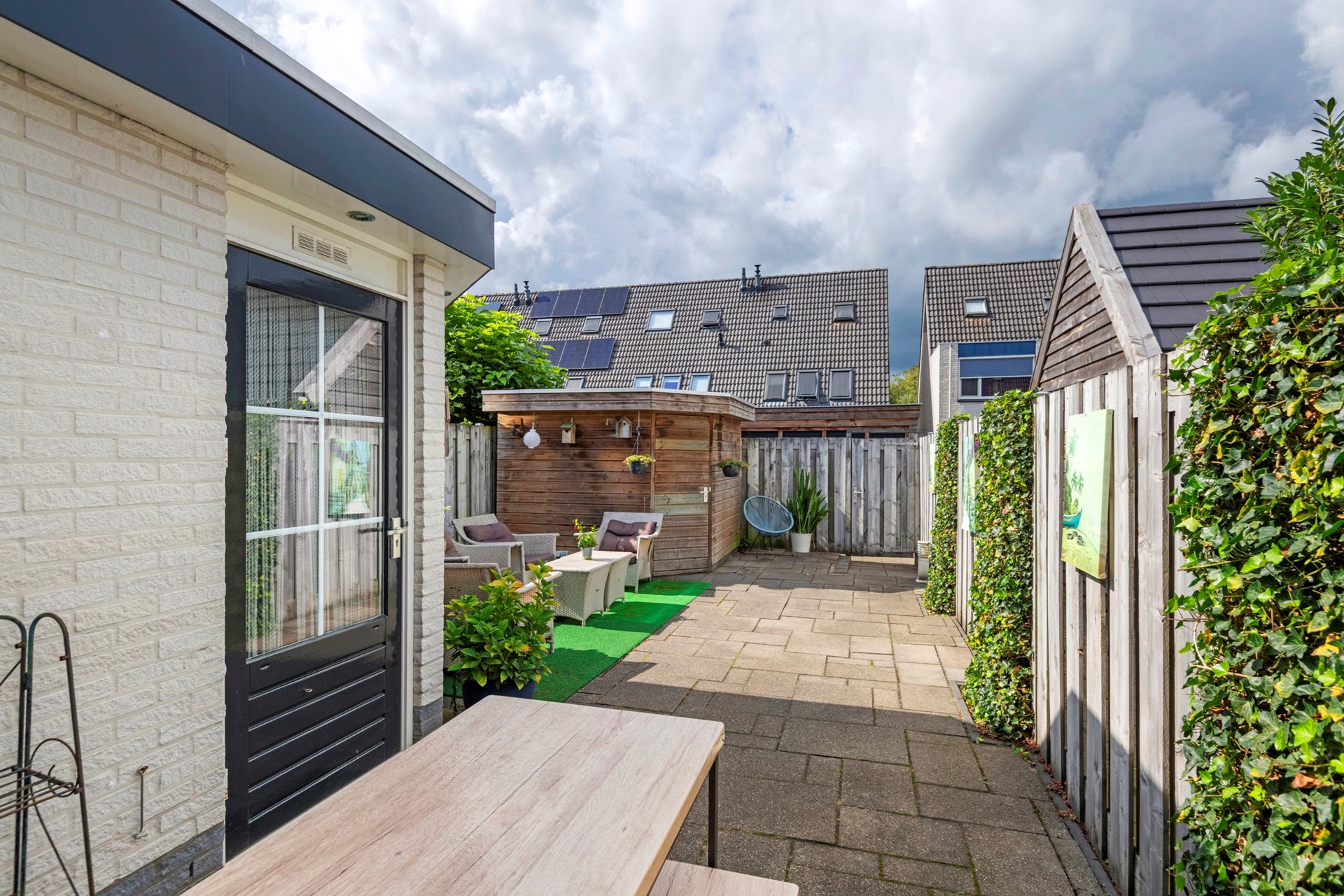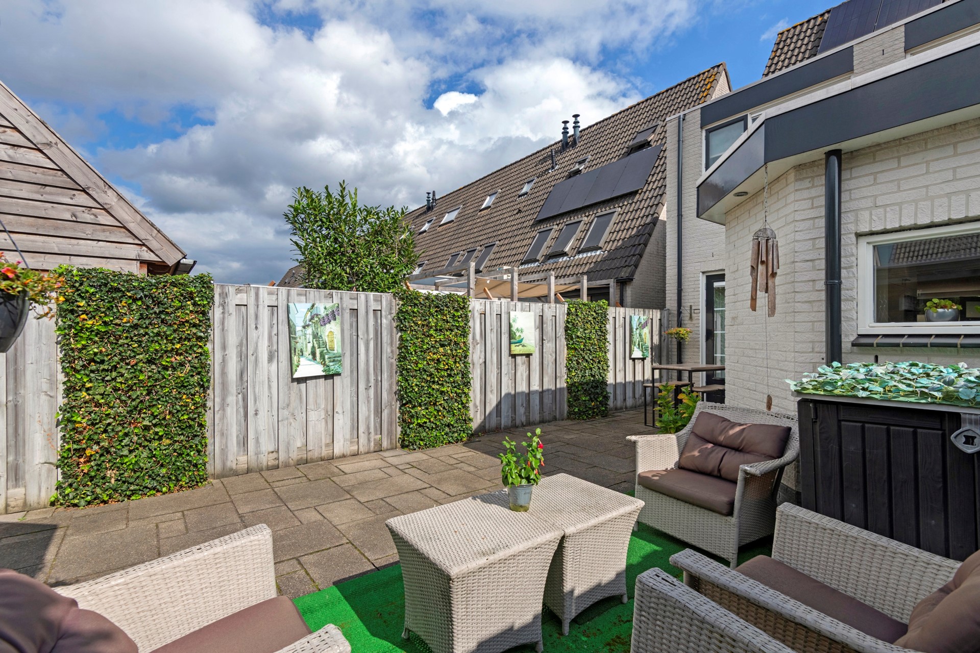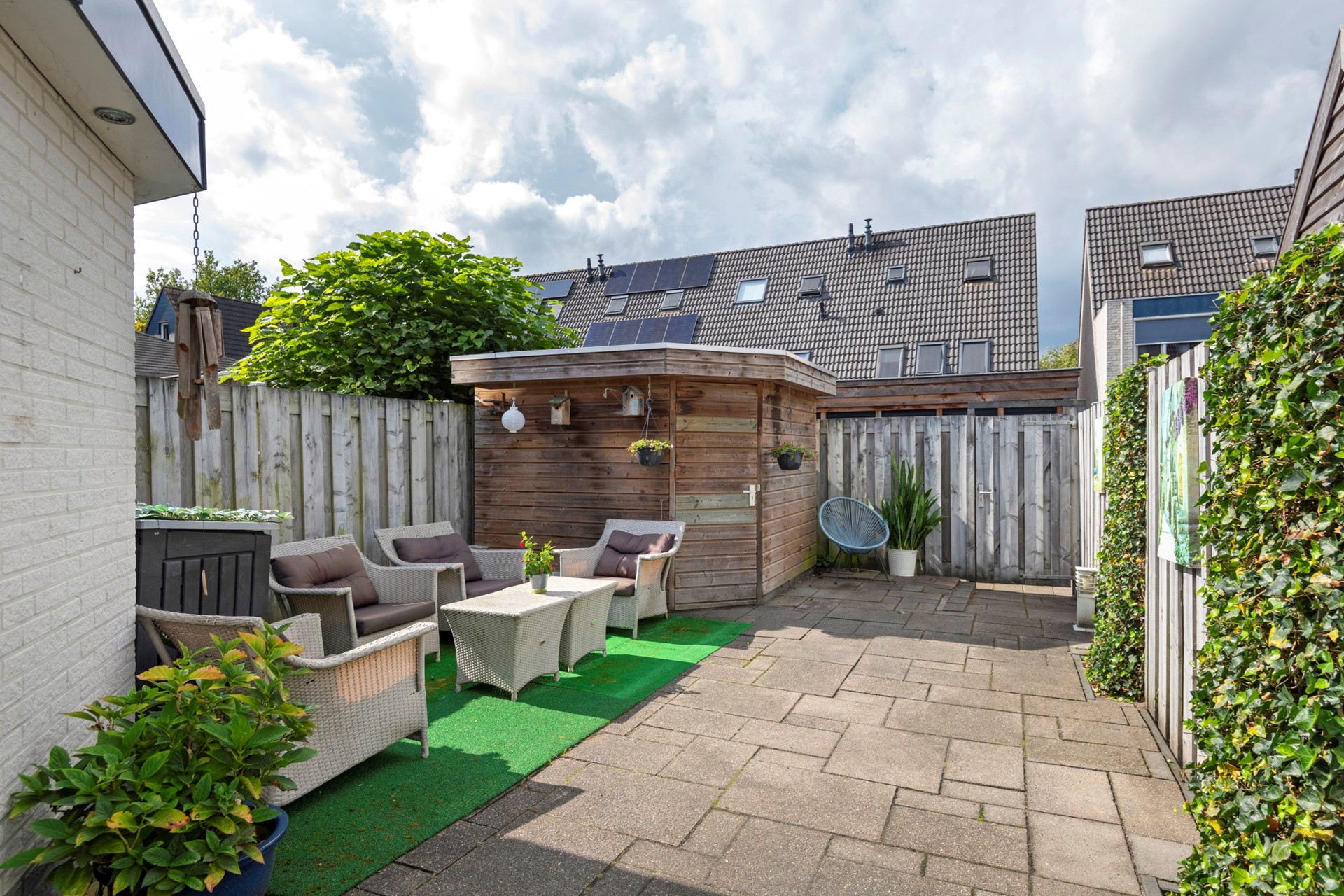 De onderhoudsvriendelijke achtertuin gelegen op het westen, is verzorgd en biedt voldoende privacy. Een heerlijke plek om buiten te zitten en genieten van de rustige omgeving. Daarnaast is er een praktische berging aanwezig, ideaal voor het stallen van fietsen en het opbergen van tuingereedschap.