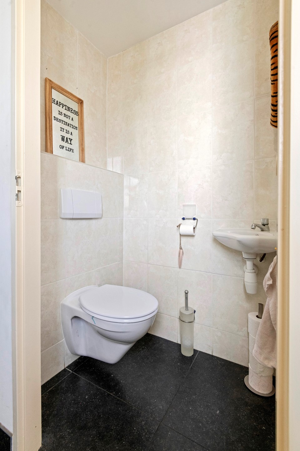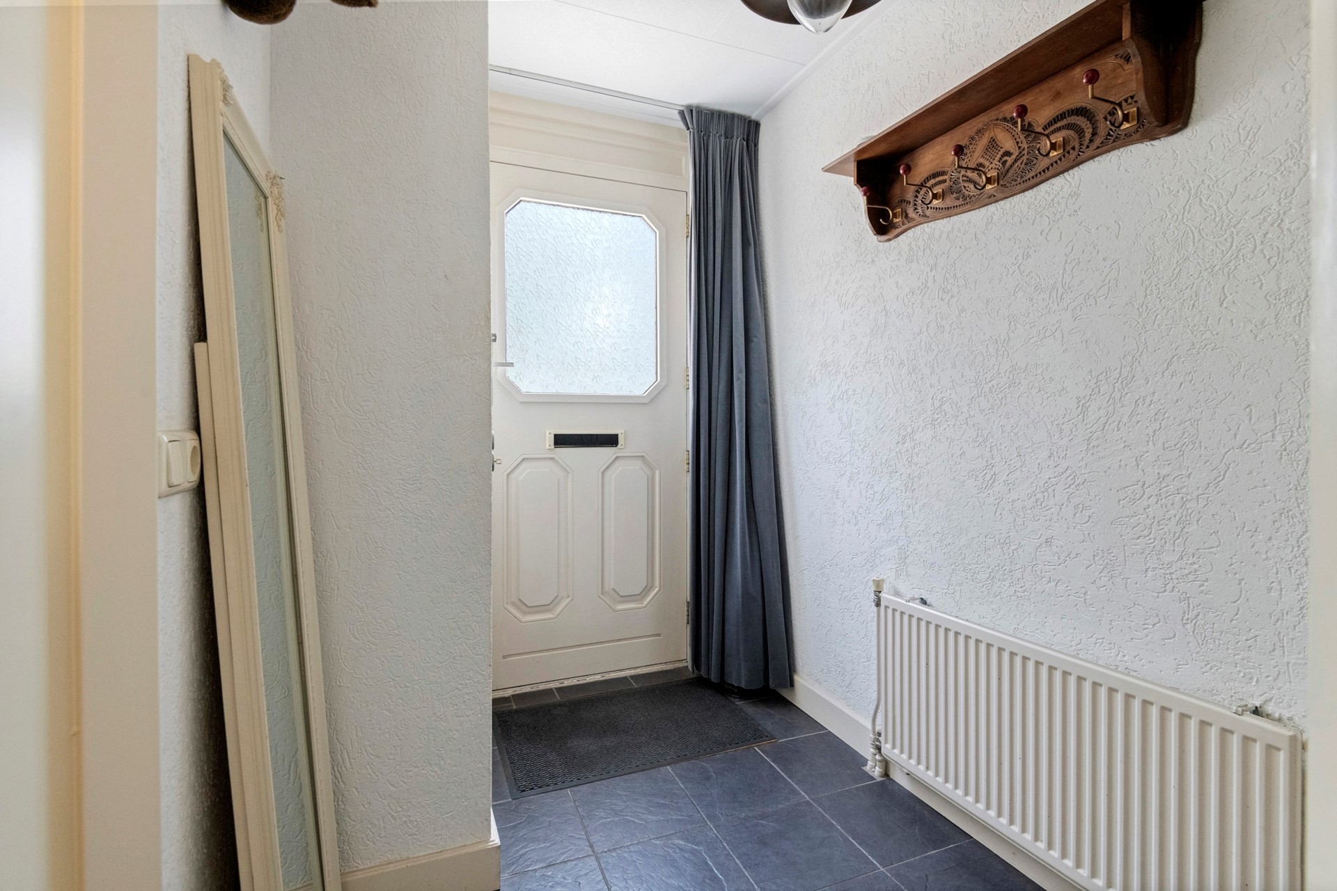 Via de verzorgde voortuin bereiken we de entree van de woning. Bij binnenkomst verwelkomt de ruime hal ons, waar we de meterkast, trapopgang en deur naar de woonkamer vinden. De grote raampartijen in de woonkamer zorgen voor veel lichtinval en geven uitzicht op de straatzijde met veel groen. De woonkamer is voorzien in natuurlijke ventilatie ook is er een trapkast aanwezig; ideaal voor het opbergen van alledaagse spullen.