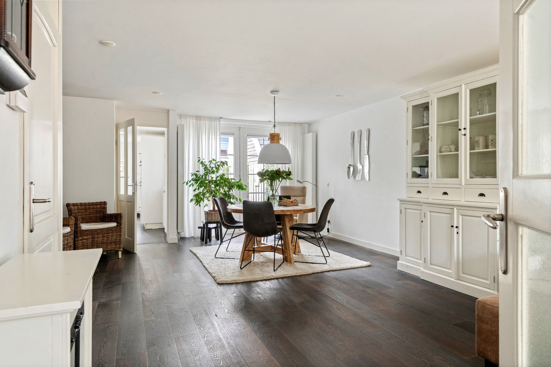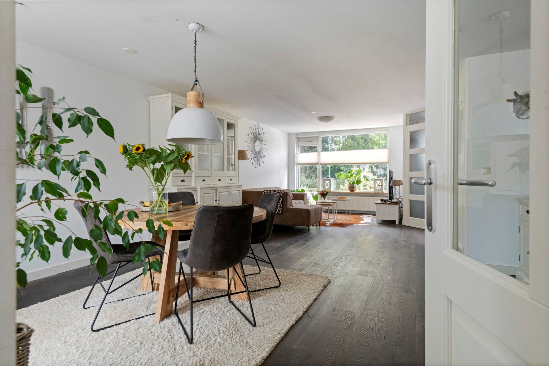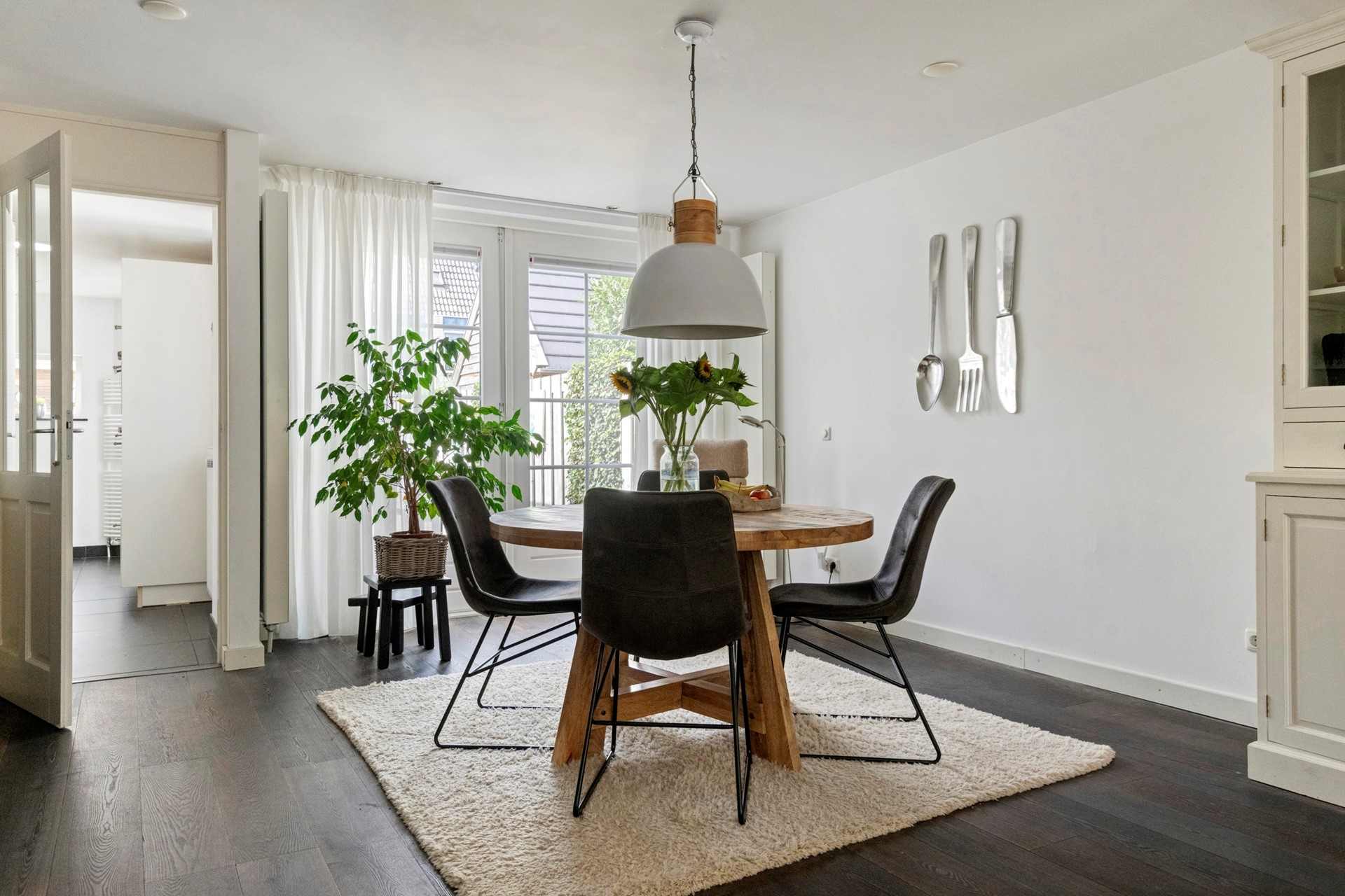 De ruimte geeft voldoende plek voor een royale eethoek opstelling. Een fijne plek die garant staat voor goede gesprekken onder het genot van ontbijtje, diner of borrel.