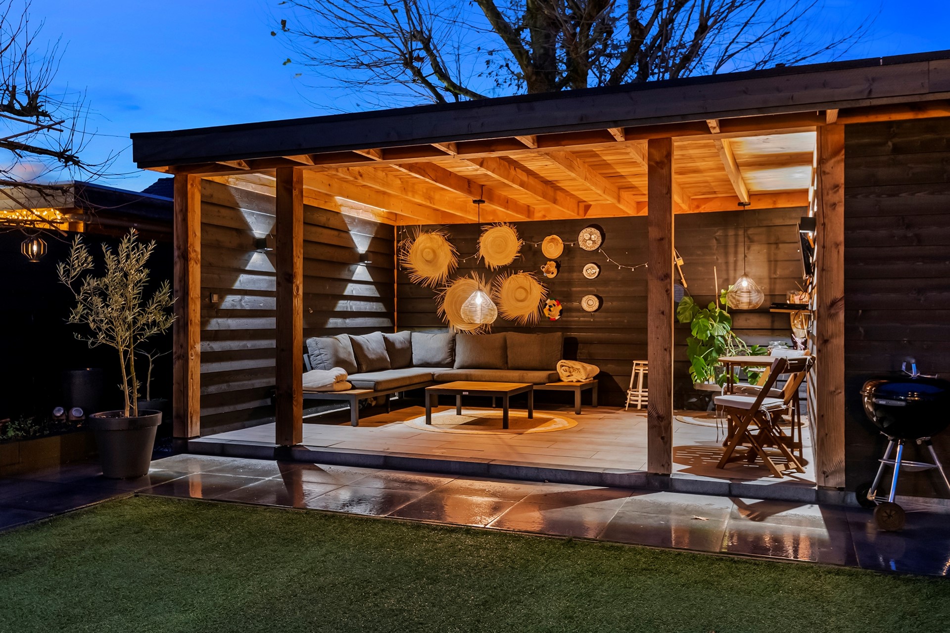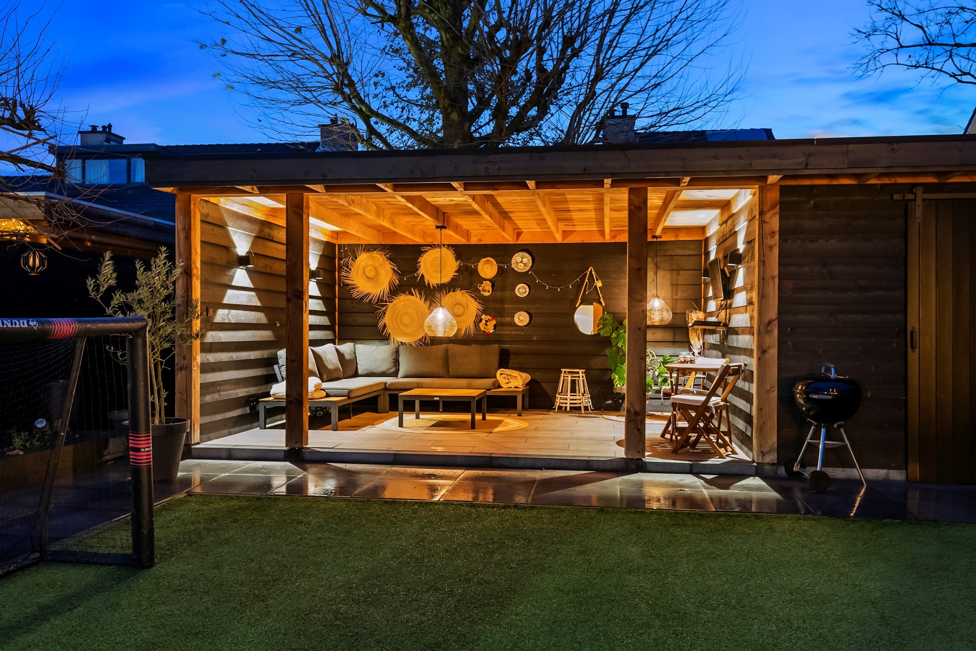 De fraai aangelegde tuin is voorzien van een royale veranda over de volle breedte van de woning, inclusief praktische berging. Hier kun je de hele dag heerlijk beschut buiten vertoeven.
