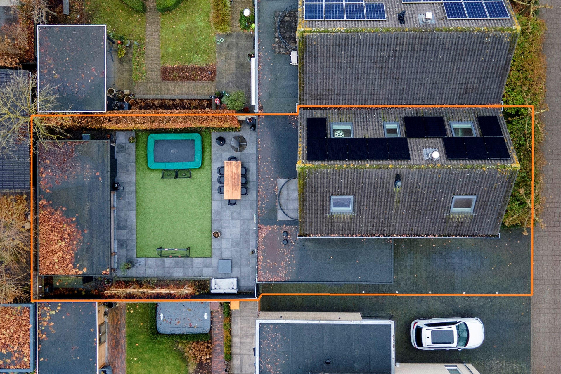 Bij aankomst valt direct de lengte van de oprit op, met ruimte voor meerdere auto’s.