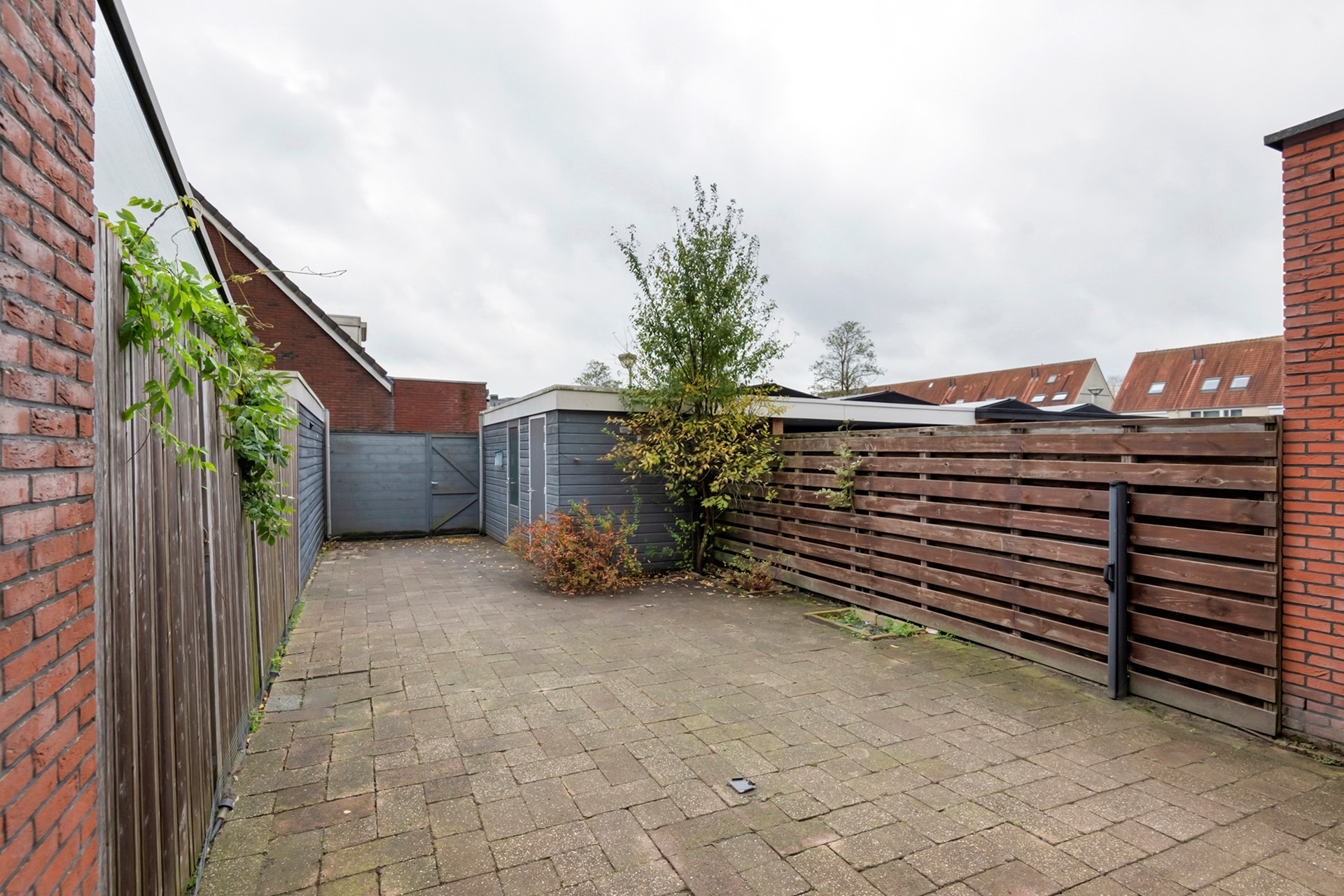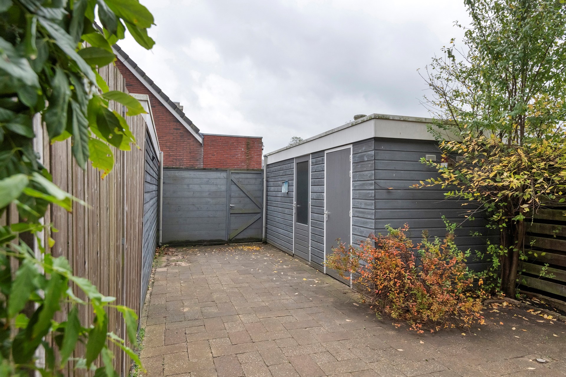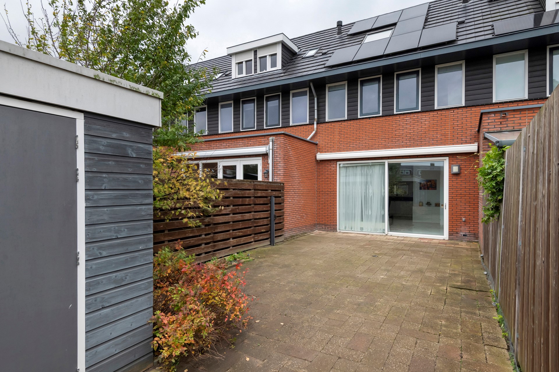 De achtertuin is een echte plus: zuidelijk gelegen, circa 14 meter diep en daardoor de hele dag zonnig. De tuin is onderhoudsvriendelijk aangelegd met volop ruimte voor een groot terras, speelplek of extra groen. Achterin staat een ruime houten berging, ideaal voor fietsen, tuingereedschap en extra opslag. Via de achterom bereik je de tuin gemakkelijk met fiets of afvalcontainer.