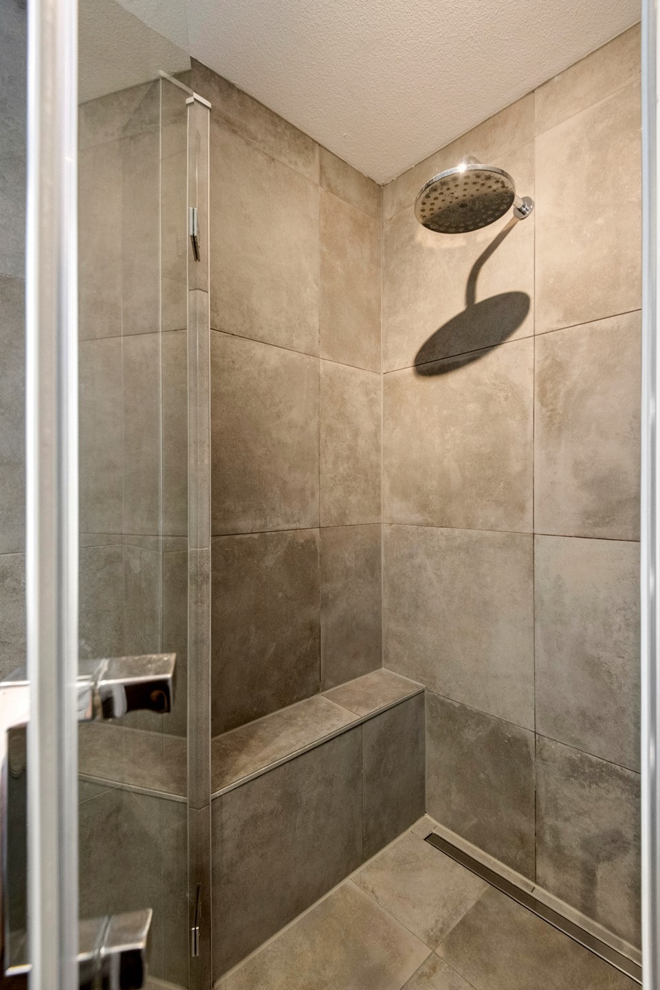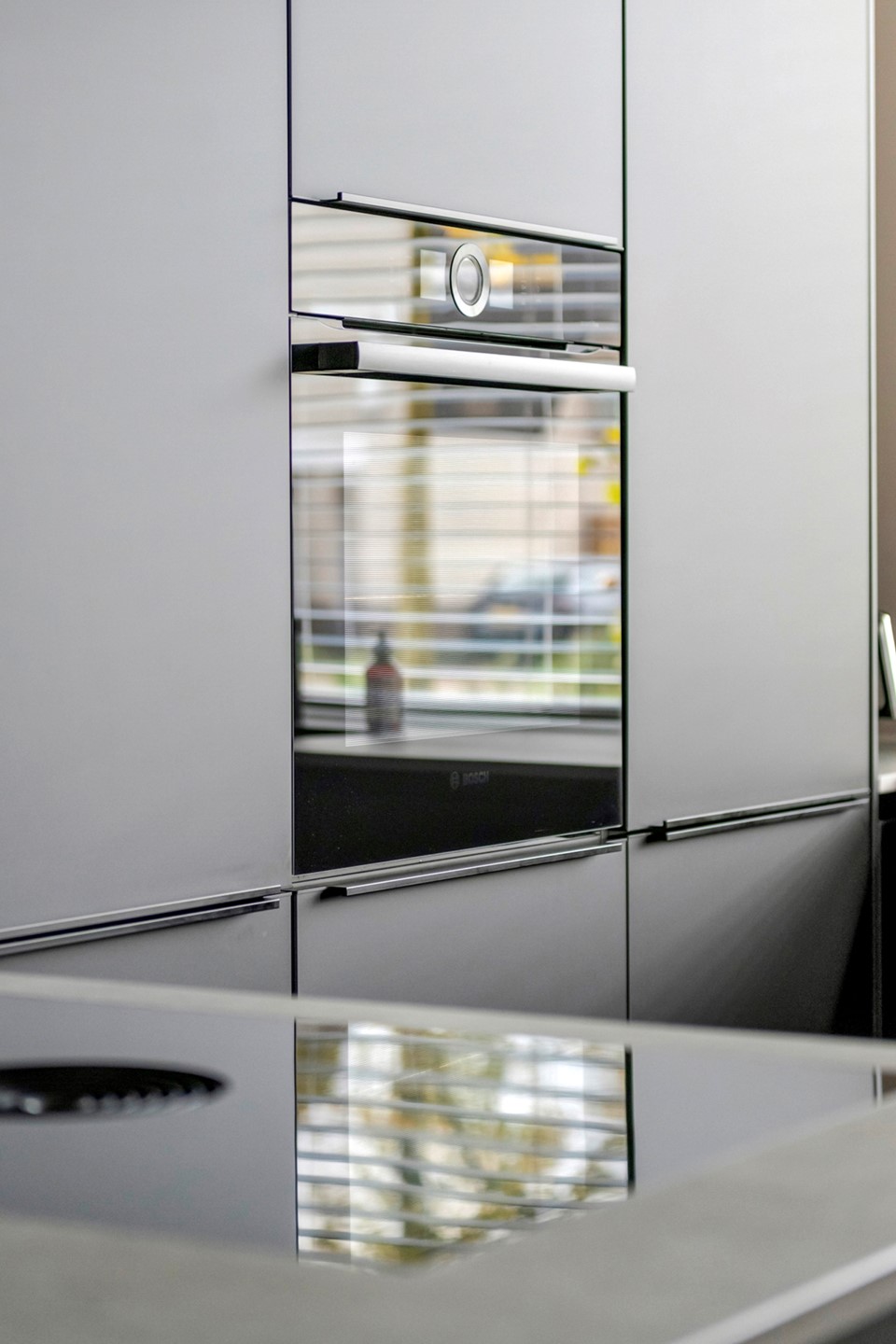De luxe keuken verwelkomt u direct. De strakke opstelling, veel werk- en bergruimte en de bar maken dit de ideale plek waar koken, borrelen en bijpraten samenkomen. De keuken is voorzien van een inductiekookplaat met geïntegreerde afzuigkap, stoomoven, Quooker, vaatwasser, koelkast en vriezer.
