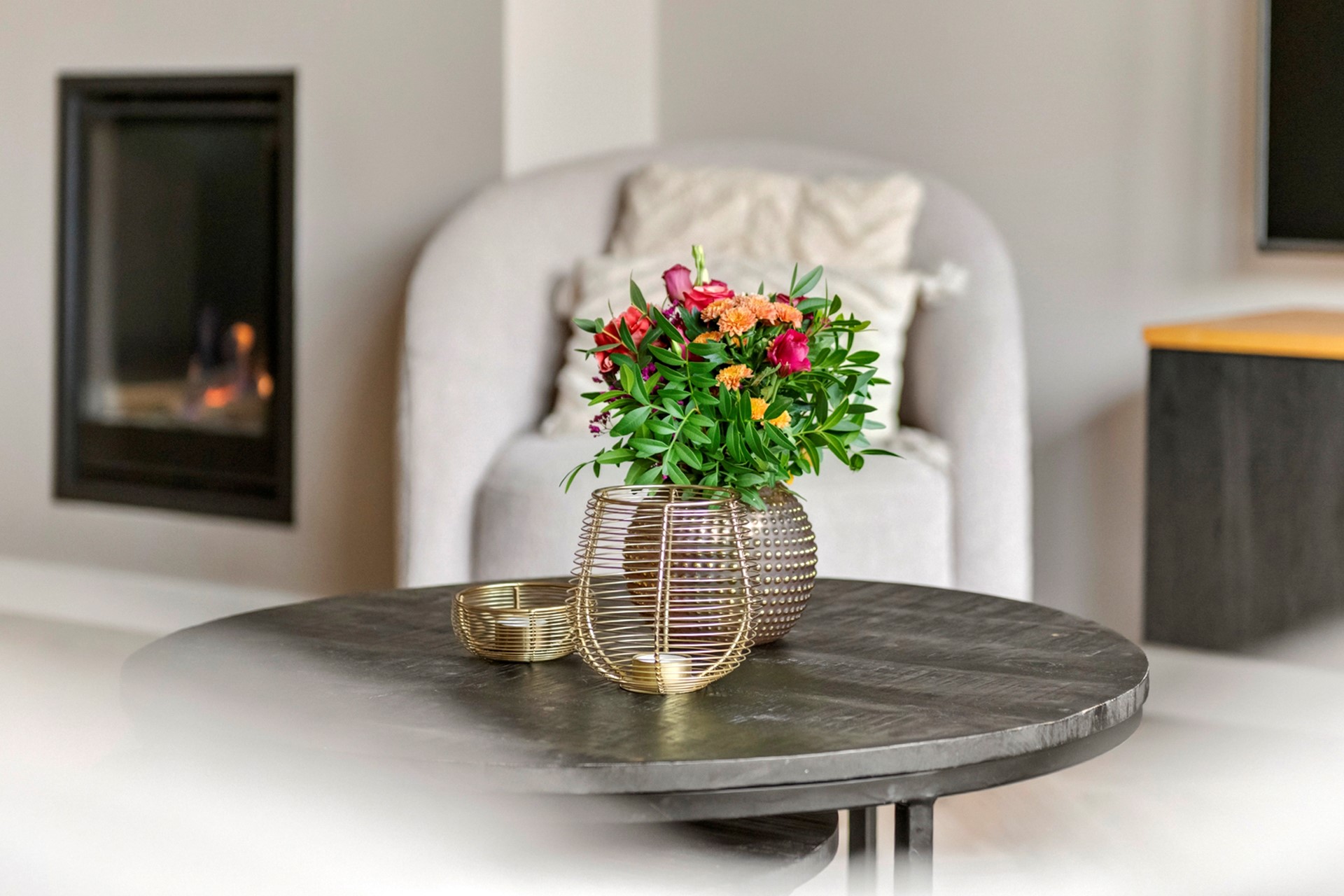 De ruime, tuingerichte woonkamer is door de uitbouw extra diep en licht, volledig uitgerust met vloerverwarming en aangevuld met een sfeervolle houtkachel; een heerlijke plek om te ontspannen, uitgebreid te dineren of te genieten van knusse winteravonden.