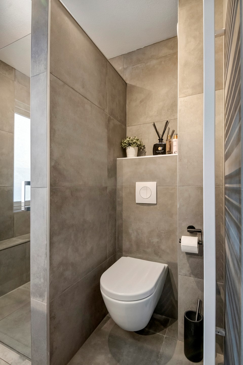 De overloop biedt toegang tot drie slaapkamers en de badkamer. Alle kamers zijn voorzien van vloerbedekking en radiatoren. De luxe badkamer is hoogwaardig afgewerkt in stijlvolle grijstinten en uitgerust met stortdouche, zwevend toilet, grote wastafelmeubel en designradiator.