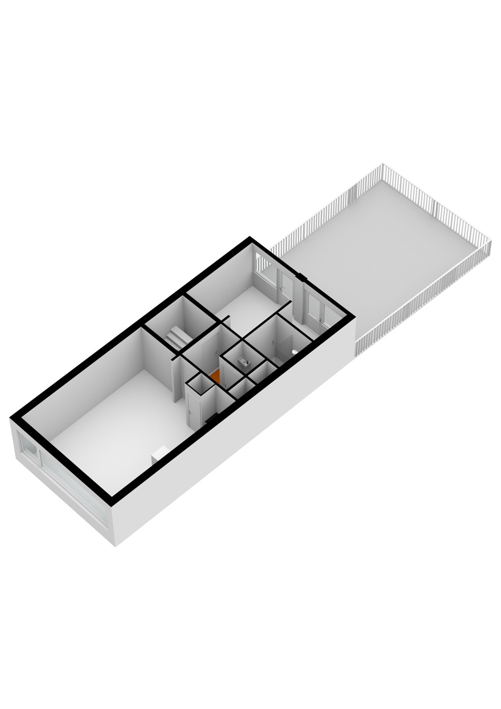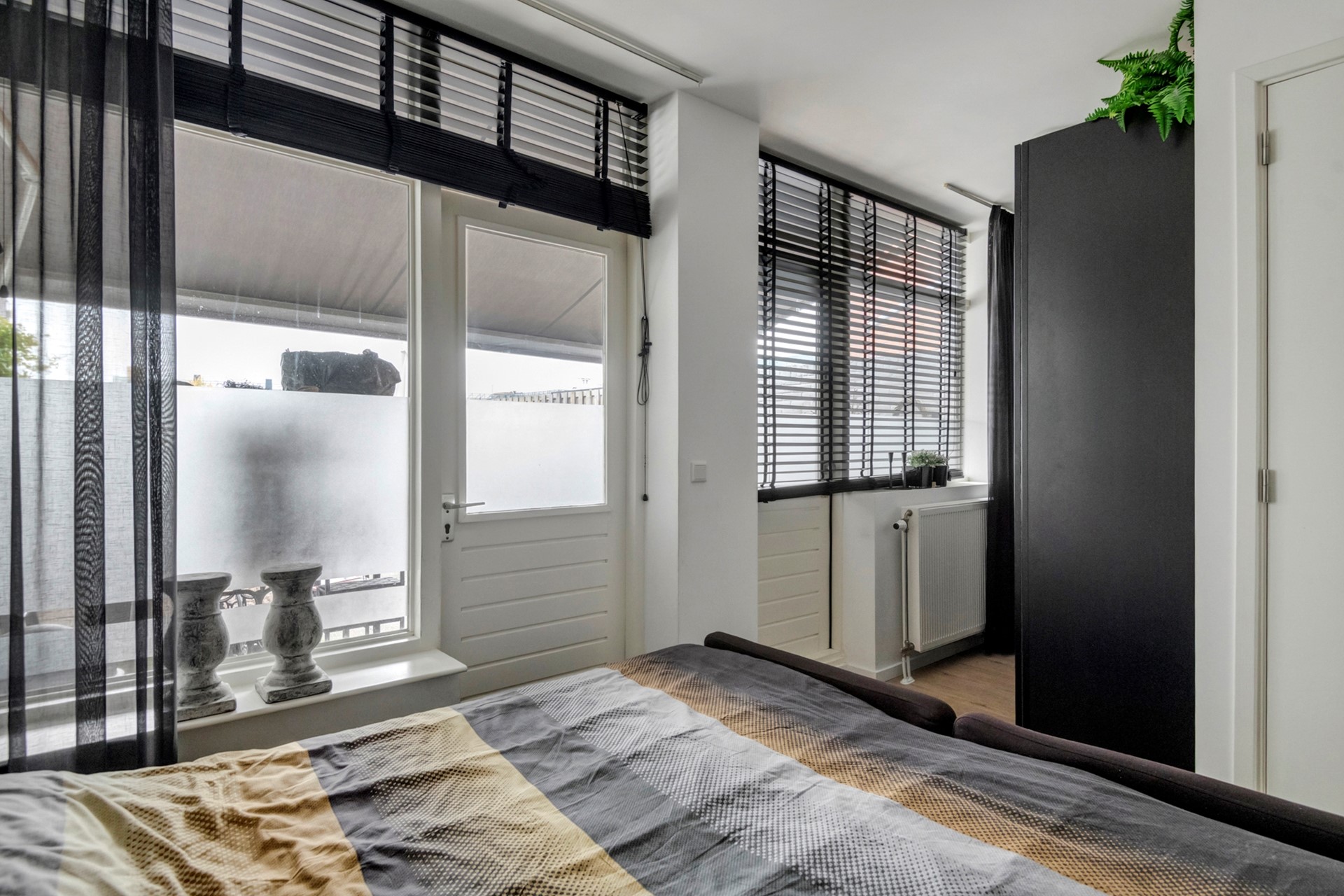 De slaapkamer is gelegen aan de rustige achterzijde van het appartement en biedt voldoende ruimte voor een tweepersoonsbed en een kledingkast. Vanuit de slaapkamer is er toegang tot het ruime dakterras van maar liefst 42 m². Dit terras is een heerlijke, rustige plek, ideaal voor een comfortabele loungeset en/of eettafel.