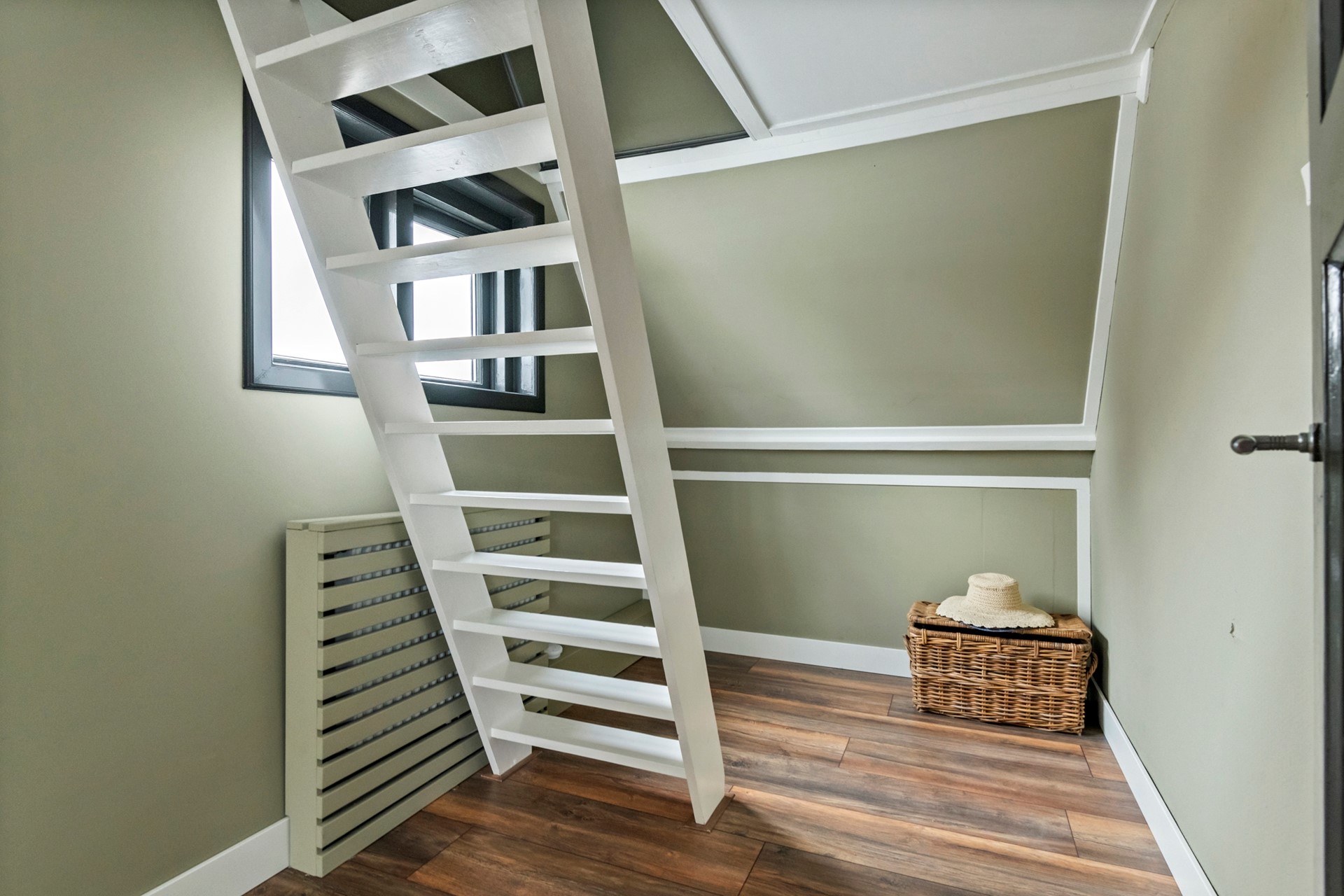 • De woning beschikt officieel over twee slaapkamers; de zolderruimte is officieel geen slaapkamer, maar kan in de praktijk uitstekend als derde (slaap)kamer worden gebruikt.